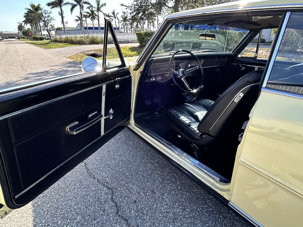 The exterior wears its correct Butternut Yellow (Code Y) finish, a signature color that highlights the Nova’s clean body lines and timeless design. The car is equipped with original Super Sport wheel covers, further enhancing its factory-correct appearance.